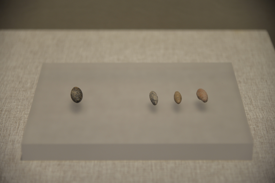 嫘祖养蚕的历史传说,也由实物照进现实。1926年,李济在夏县西阴村第一次独立主持田野考古发掘,标识中国近现代考古的开端。距今约6000年、人工切割的半个蚕茧的出土,力证此地为中华先民栽桑养蚕的重要发祥地。如今,这珍贵的半个蚕茧标本,收藏于台北故宫博物院。而静卧于运博展柜的几枚石雕、陶制蚕蛹,同样证明古老的传说不是空穴来风——它们出土于西阴村遗址附近的师村遗址,距今约6000年。