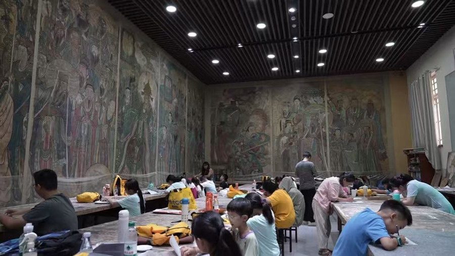 守护以外,深度挖掘艺术圣殿内涵的多维探索,更让永乐宫文化在创造性转化与创新性发展中,焕发新生。一方面,永乐宫开辟着越来越多样的研学课堂:临摹者的笔尖与元代画师的粉本隔空唱和,斗拱展示演绎“勾心斗角”的营造传奇,搬迁体验还原当年“化整为零”的不可能……另一方面,科技与人文的握手,让永乐宫文化基因在数字时代获得全新的表达方式,以形形色色的主题展览走出去。