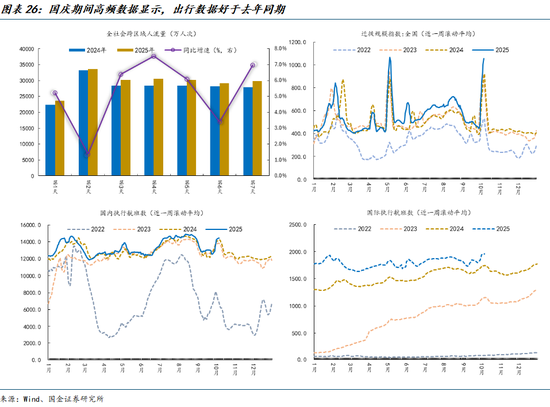 本周行业关注中,我们新增出行相关板块中的航空、机场,新增理由为当前航空机场属于低位的顺周期消费资产,近三年估值分位数水平在所有的消费板块中相对较低;与此同时,国庆假期期间出行数据好于去年同期,预计在“估值低位+景气修复”的情形下或将存在补涨需求。