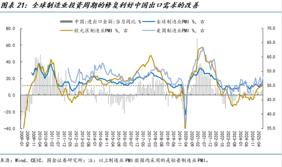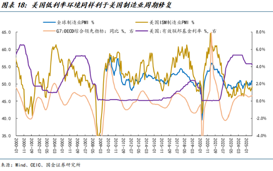 路径一:如果美元的反弹是出于避险需求的上升,投资者或将更加倾向于持有美元现金,非美市场可能面临资金外流。但在这个过程中A股市场可能具备相对韧性:一方面,过去几年中国资产涨幅相对落后;另一方面,即便是经历近一年的股价上涨,但相较于海外资产而言,无论是当前市盈率还是2025年和2026年所隐含的估值水平和美股为代表的发达市场估值水平仍有较大差距,只需关注我们此前提到的与美股出现较强共振的部分科技板块的结构压力。路径二:美国制造业与全球制造也周期修复所带来的出口预期强化,结合中国反内卷,带动A股盈利周期修复。未来可能出现的演绎路径是:全球制造业复苏→出口订单回暖→需求修复且国内“反内卷”继续执行→价格企稳并带动企业盈利修复。对于中国资产(A股与港股)而言,脆弱点在美元走弱下与全球资产发生高度共振的板块。两种不同场景,低位的中国顺周期资产具有最好的估值保护与潜在收益可能,受益于全球制造业周期修复的产业链条有边际上最大变化。