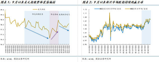 回看9月以来美元指数的交易逻辑,整体经历了“美联储降息预期交易→降息落地+经济软着陆→美国政府关门”,尽管中间出现边际反弹,但整体震荡偏弱。在此期间,全球主要资产呈现一个非常明显的交易特征是:多数资产价格的走势是建立在“弱美元”的叙事逻辑之上: